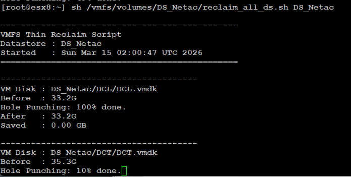 [root@esx8:~] sh vmfs_thin_reclaim.sh DS_ProdExample Output