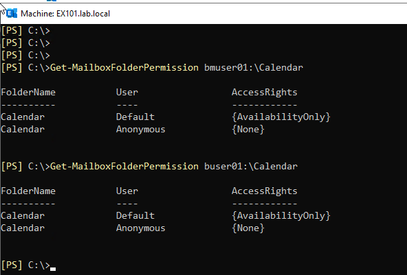Get-MailboxFolderPermission bmuser01:\Calendar
